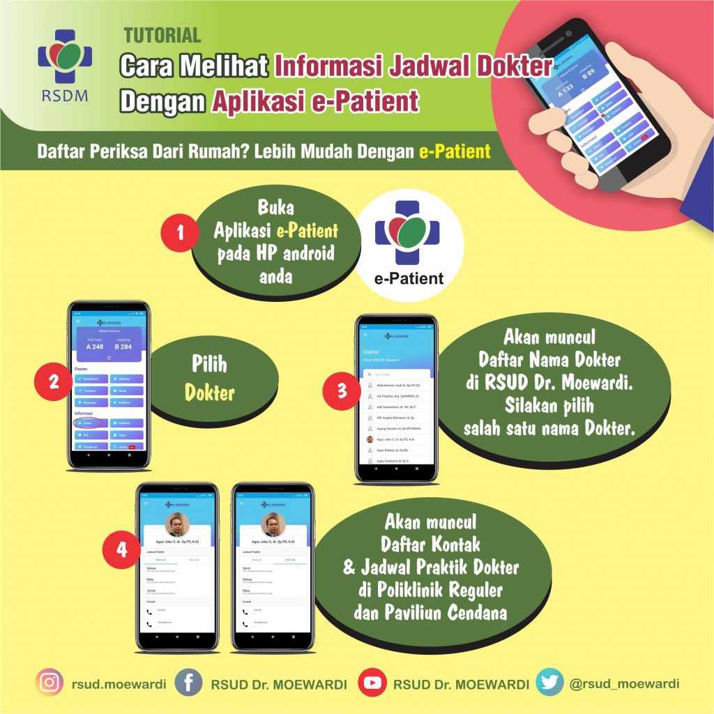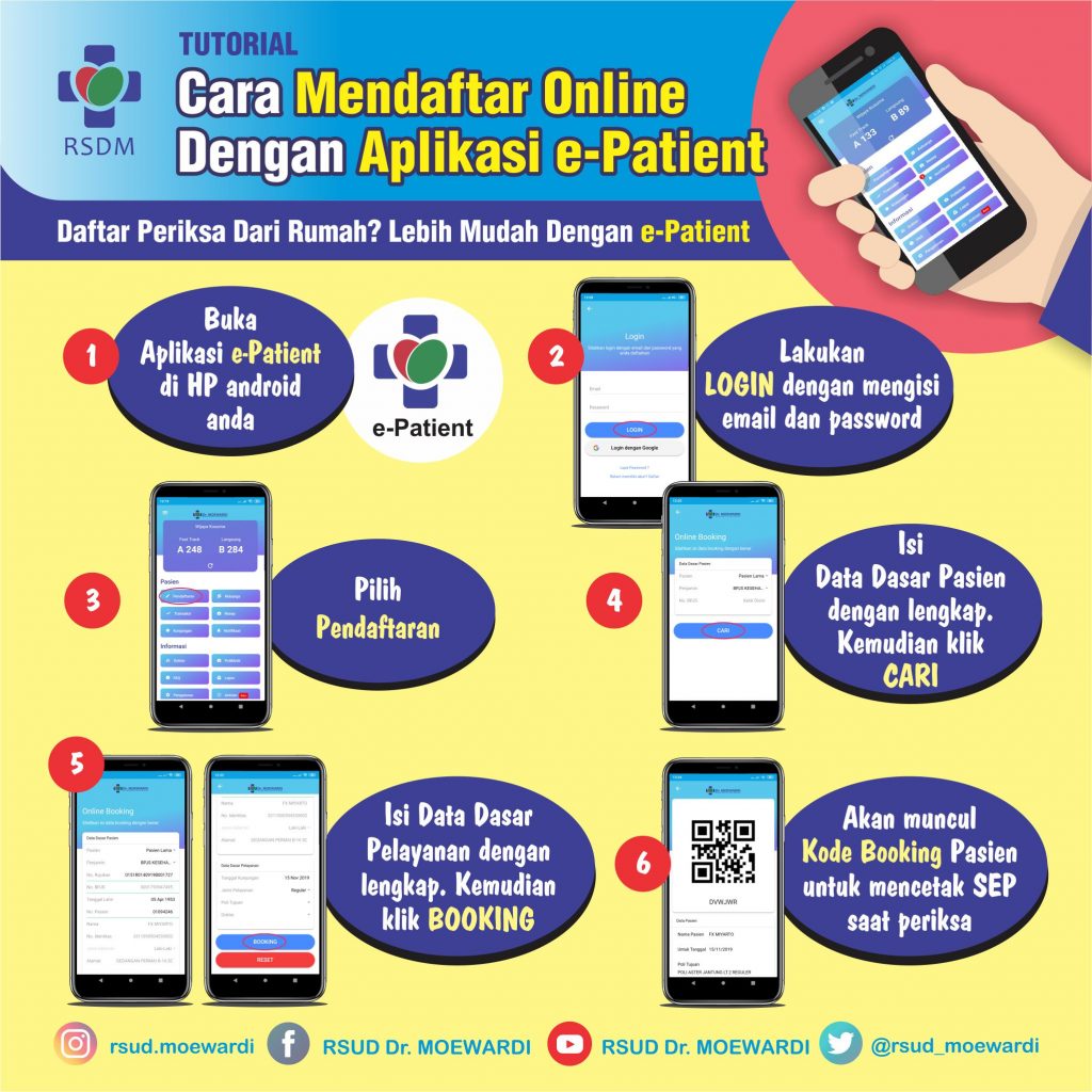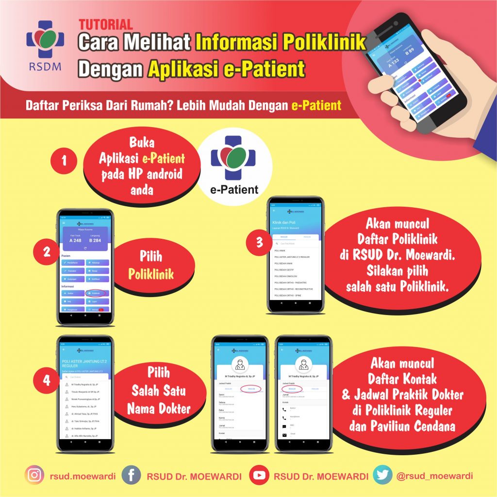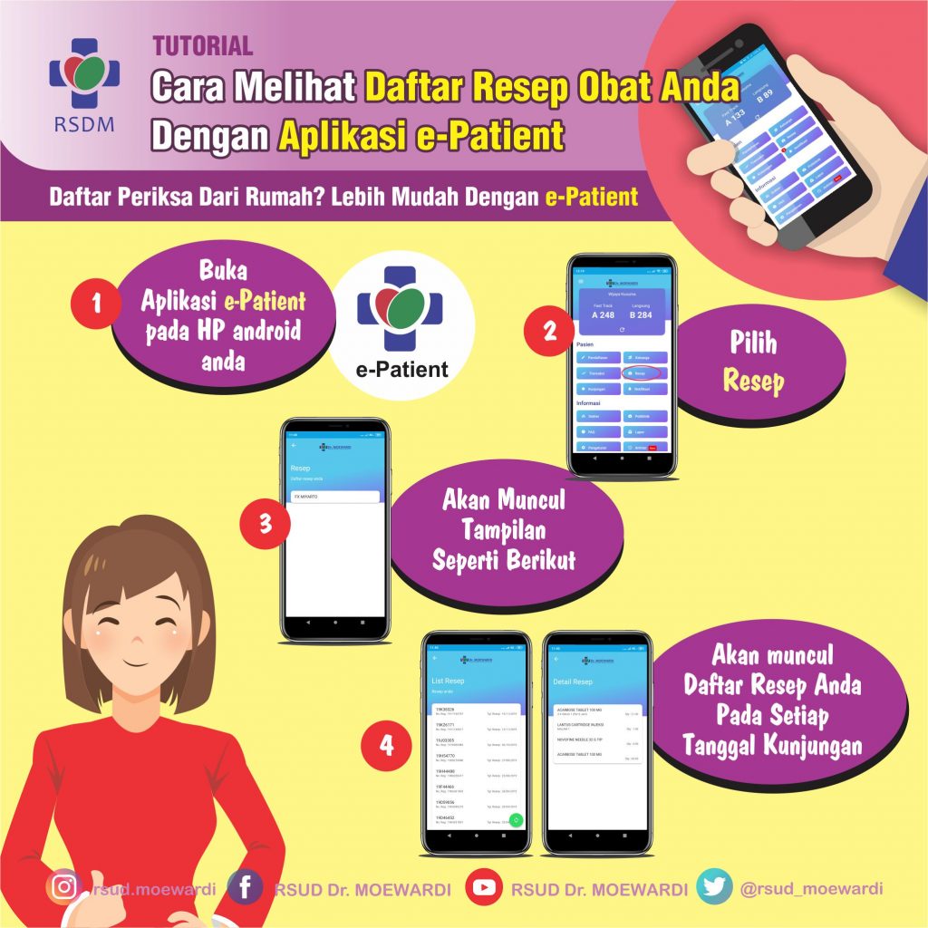 Pastikan di HP kalian sudah ada aplikasi e-Patient ya. Banyak manfaat yang bisa kalian dapatkan seperti daftar rawat jalan online, cek resep obat, pengingat jadwal periksa, melihat nomor antrian, jadwal dokter, jadwal poliklinik hingga skrinning mandiri COVID-19 serta masih banyak lagi.
