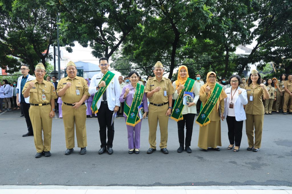 Plt. Direktur RSUD Dr. Moewardi, dr. Heri Dwi Purnomo, Sp.An., beserta para Wakil Direktur memberikan penghargaan Pegawai Berintegritas dan Berkomitmen Periode April-Juni 2025.